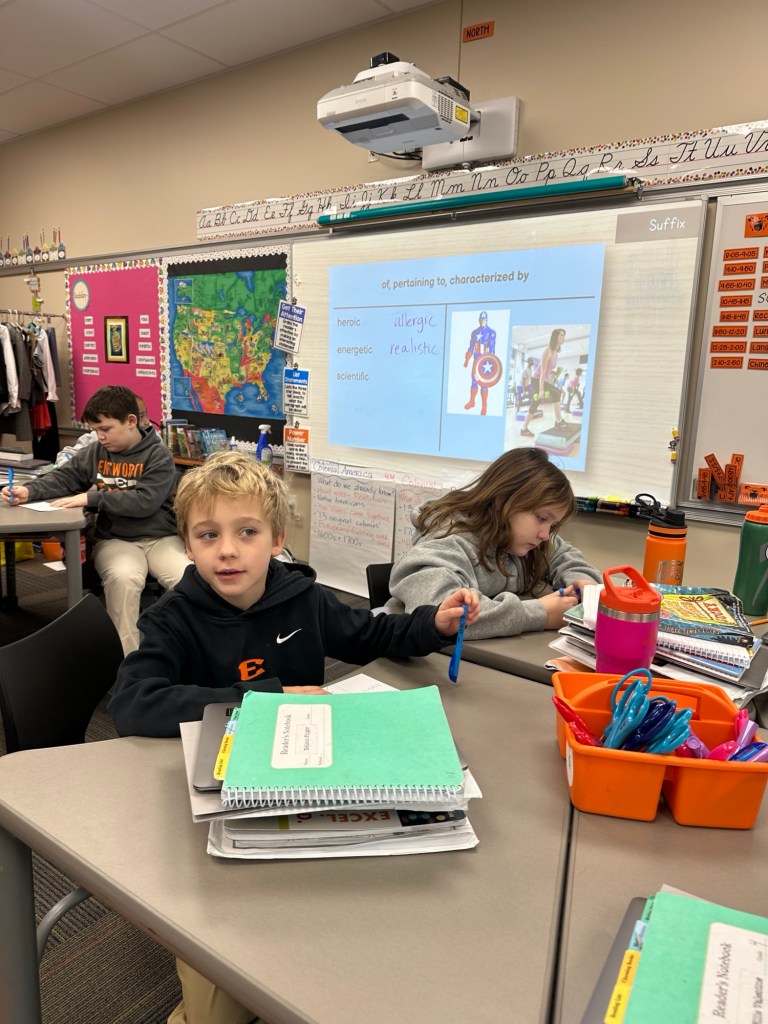 In language arts this week, students learned two new morphemes and two new vocabulary words from their class novel.