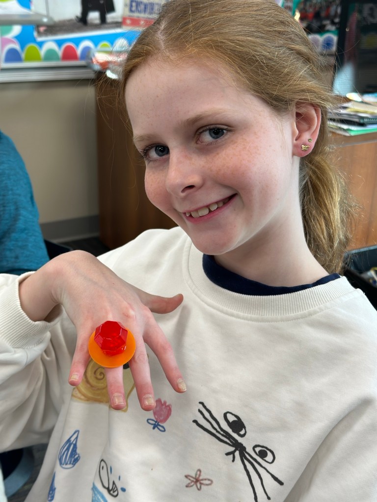 The focus and the highlight of the week for 4E was our class play, “The Mysterious Case of the Missing Ring.” With only 2 1/2 weeks between winter break and our show to rehearse, we were feeling a little nervous before today’s assembly. I am so proud of how they did! Not only did they deliver a wonderful performance, the class also worked together to set the stage between scenes, pull the curtain, manage their props, and create the scenery! They were up there all by themselves. Way to go, 4E!