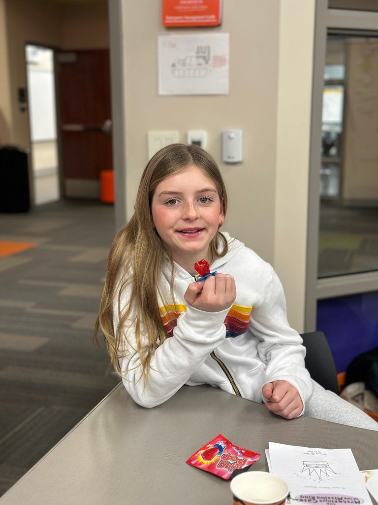 Later in the week, we tasted crab cake balls for Maryland that Christian and his dad made, and Isla brought Key lime pie for Florida. Cooper brought in heart-shaped berry tarts for Oregon. Ellie’s family made Nebraska coffee cake, and Charlie brought in prickly pear-flavored popcorn for Arizona. Finally, Roger made a yummy Texas sheet cake, and Will brought in biscuits with chocolate gravy for his state of Arkansas. Phew! Thank you to all our parents who made this possible by shopping, ordering, baking, slicing and more.