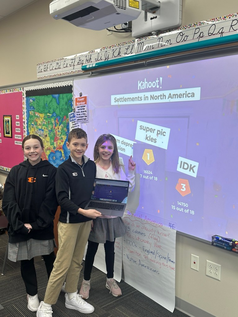 This week, 4th graders reviewed what they have learned so far about European colonies in North America. They played Around the World and competed with a Kahoot! They took a quiz on the information today.
