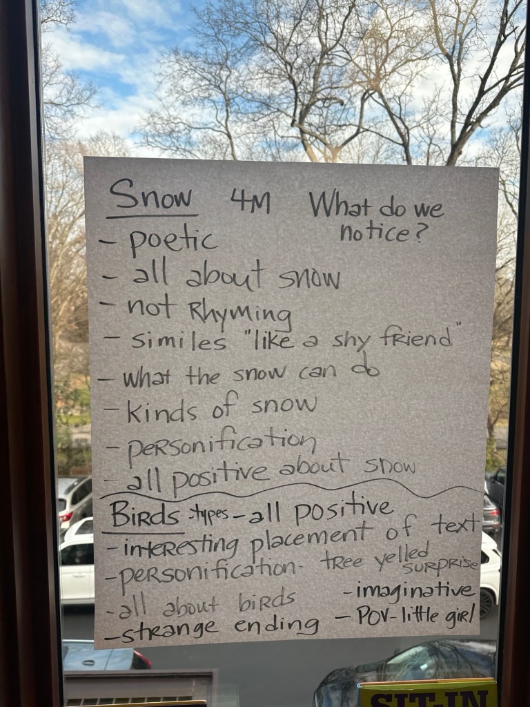 In addition, we read a series of picture books to prepare for an upcoming writing project. We charted our observations of the writing. Students noticed similes, personification, and more.