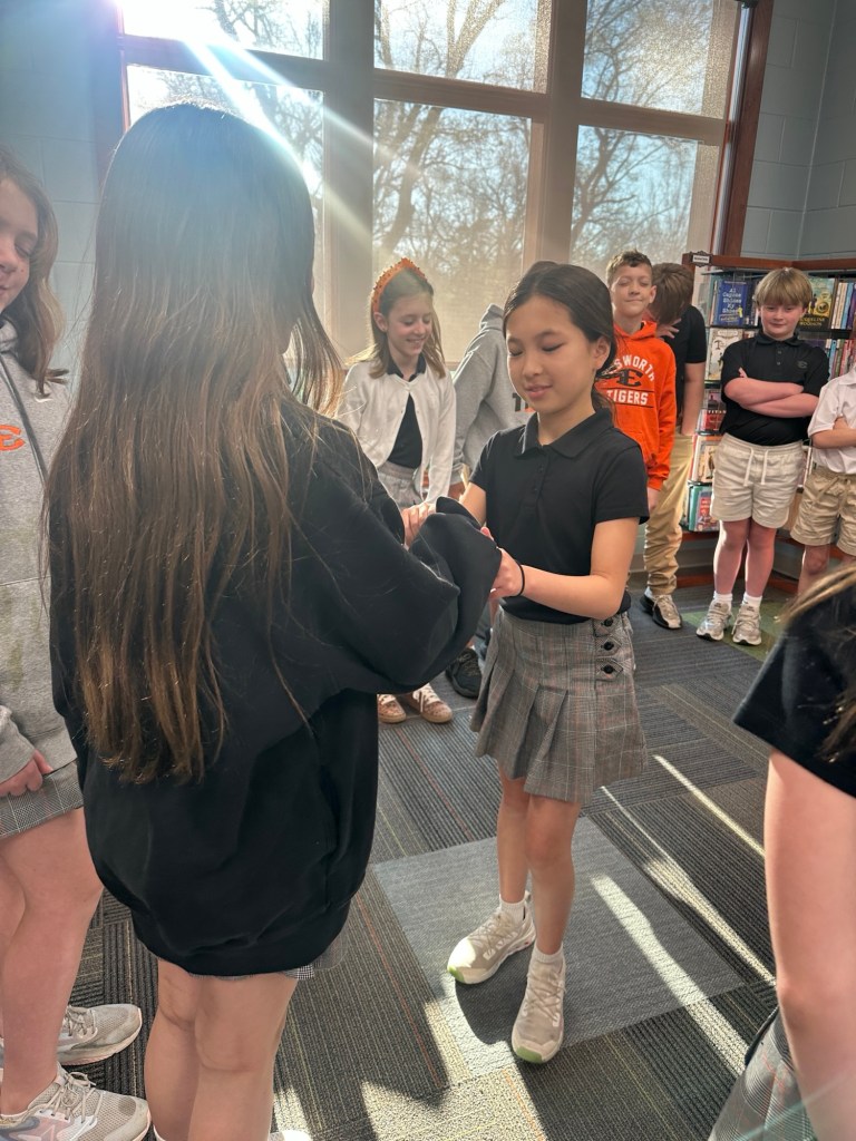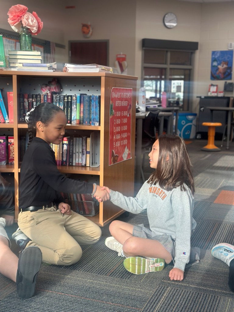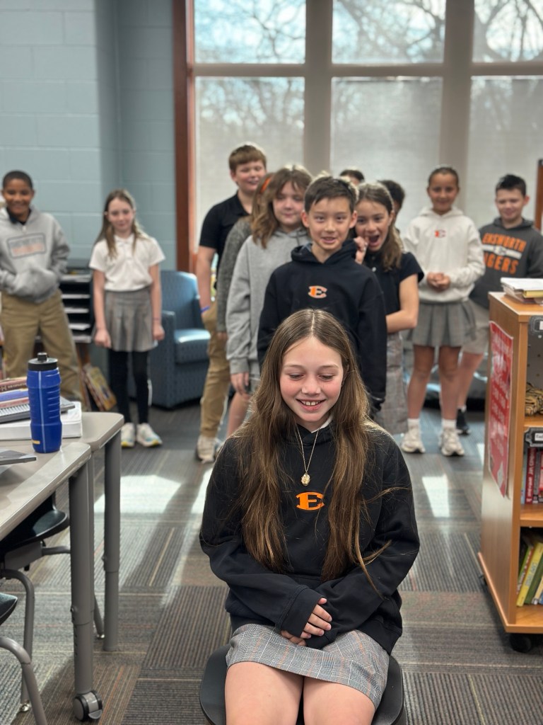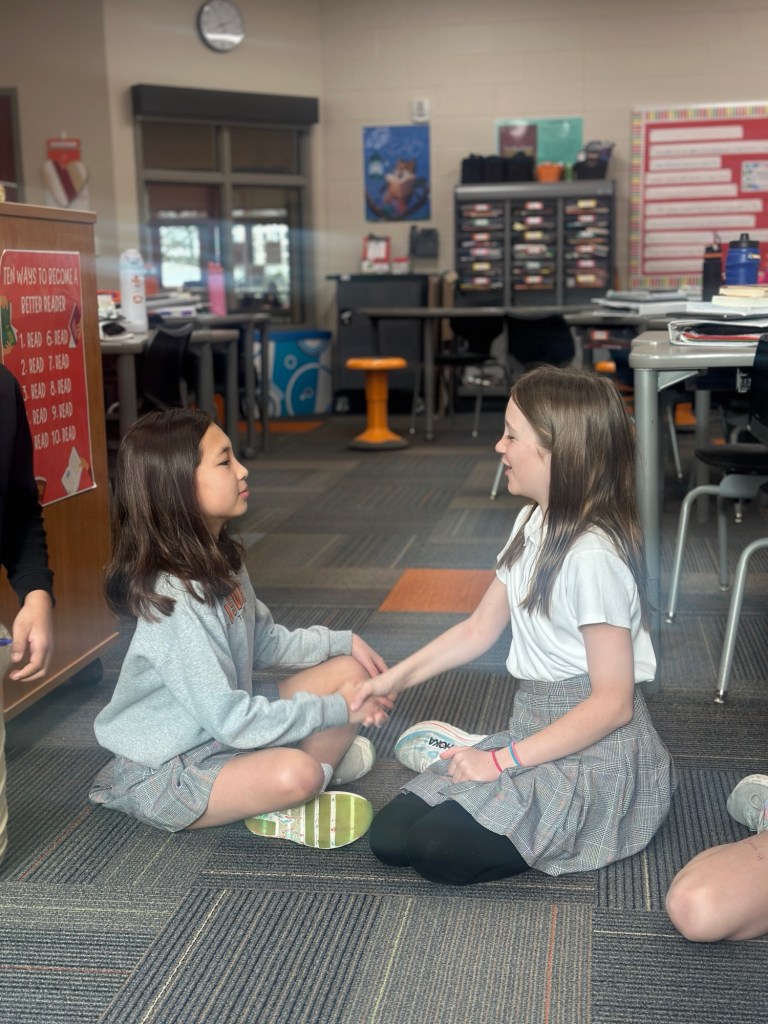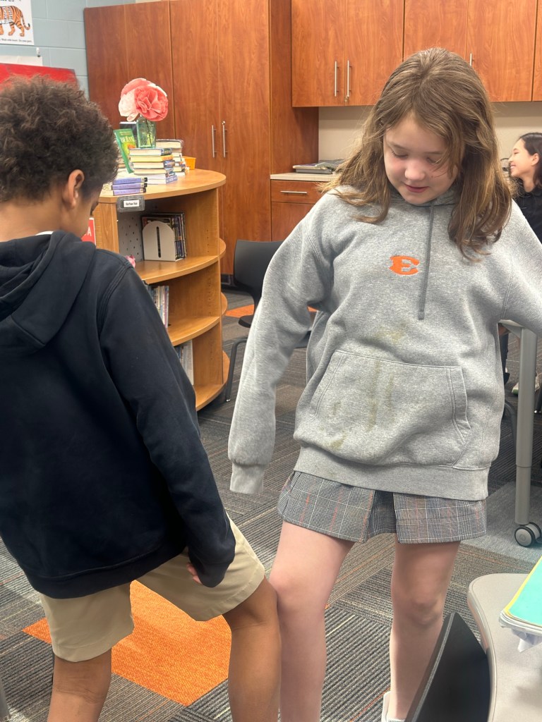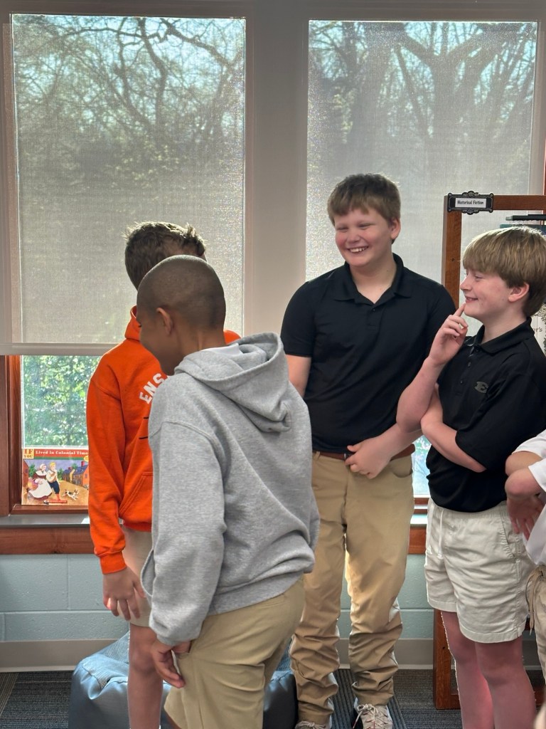 In Morning Meeting, we had fun with’ Good Morning, Ms. President,’ Back to Back, and 20 Questions. They shared about where their names came from and about their spring breaks, of course.