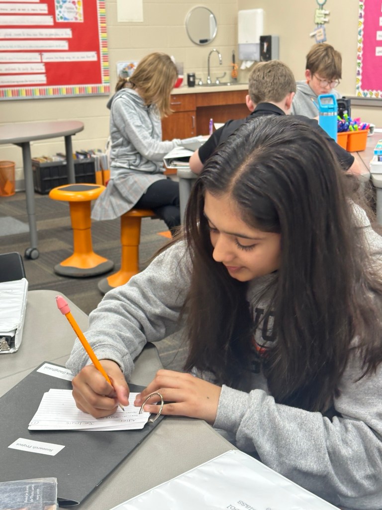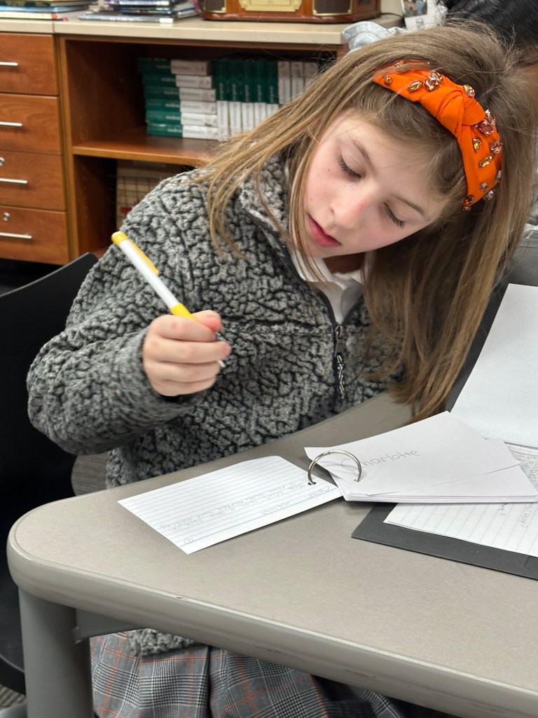 They also learned some rules for note-taking to help them write facts in their own words, to keep notes short and simple, and to keep notecards organized. Tuesday we were ready to give it a try! Using a page from a picture book biography, students read and took notes. Then we ‘compared notes’ to see how everyone did. On Wednesday, we practiced again with a passage on George Washington, and I met with each student about their notes. By Thursday, they were ready to dive into their actual biographies.