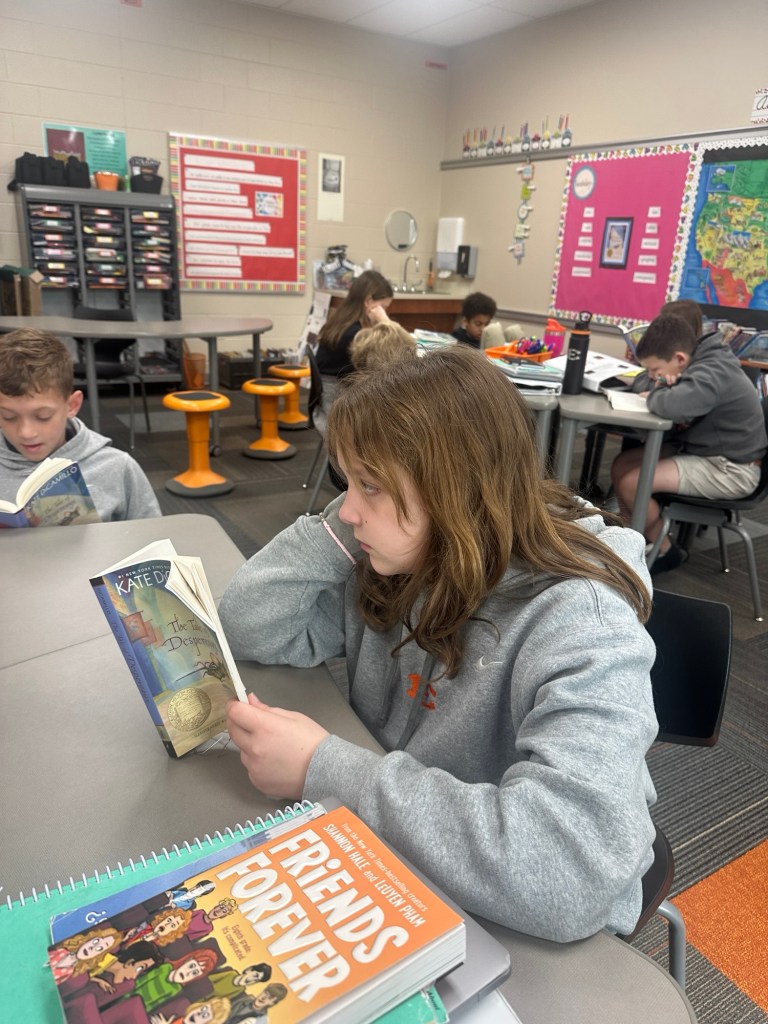 We read six chapters in The Tale of Despereaux this week. Some were read whole-class, some independently, and others in small groups with either Mrs. Bryant or me.