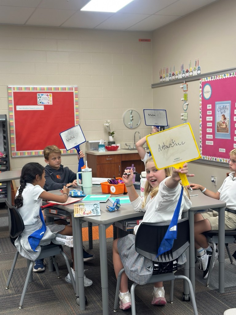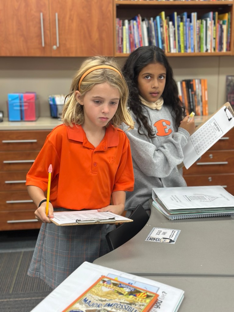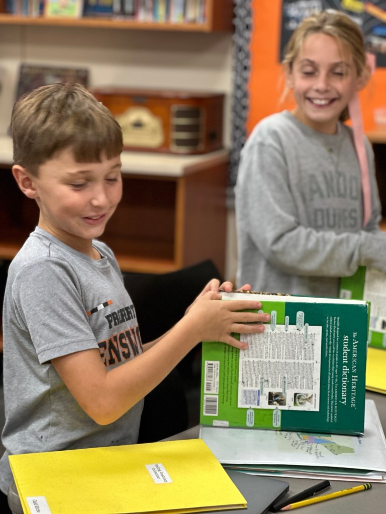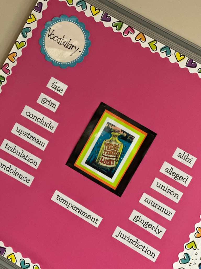 This week, 4th graders were very excited to begin our new class novel, Three Times Lucky. This book by Sheila Turnage is a Newbery-Honor winner, and we were thrilled to discover that Amelia’s mom worked on its publication! We have read the first two chapters, and the kids are loving it so far. We also learned a few new vocabulary words which are featured in the book.