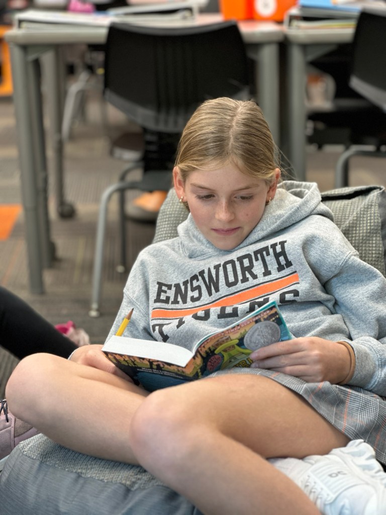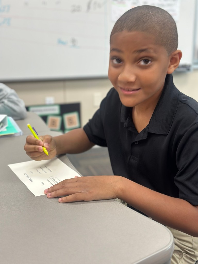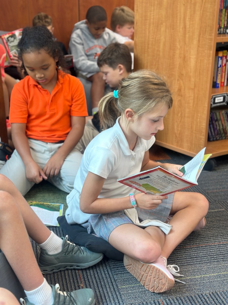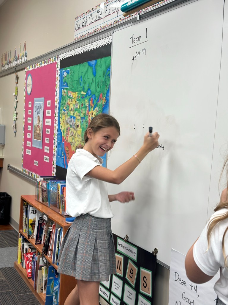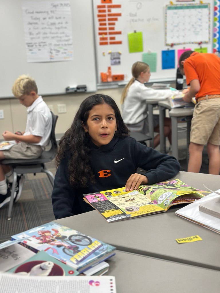 This week, 4th graders were very excited to begin our new class novel, Three Times Lucky. This book by Sheila Turnage is a Newbery-Honor winner, and we were thrilled to discover that Amelia’s mom worked on its publication! We have read the first two chapters, and the kids are loving it so far. We also learned a few new vocabulary words which are featured in the book.