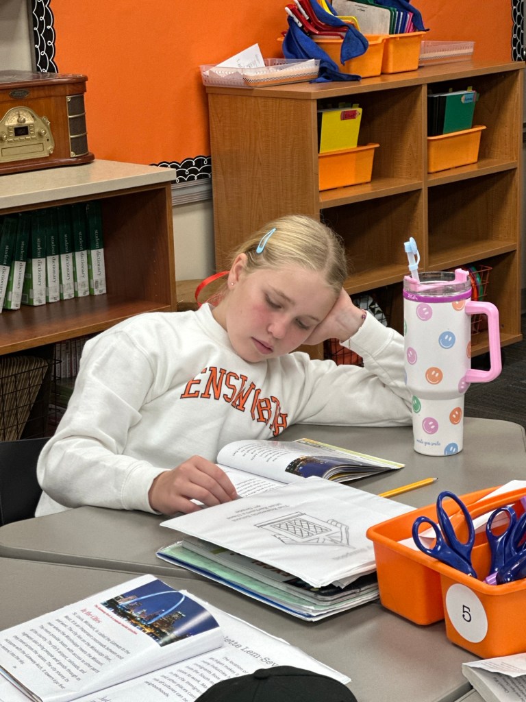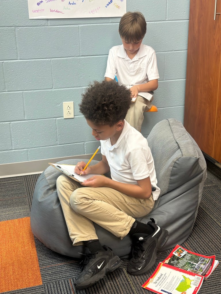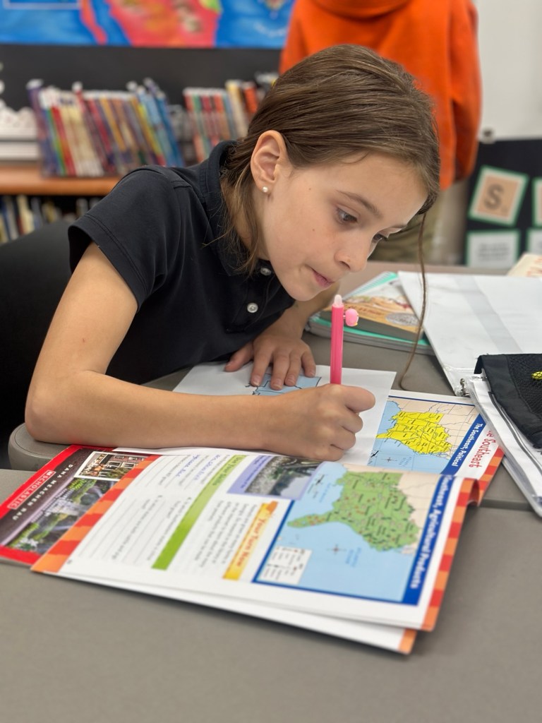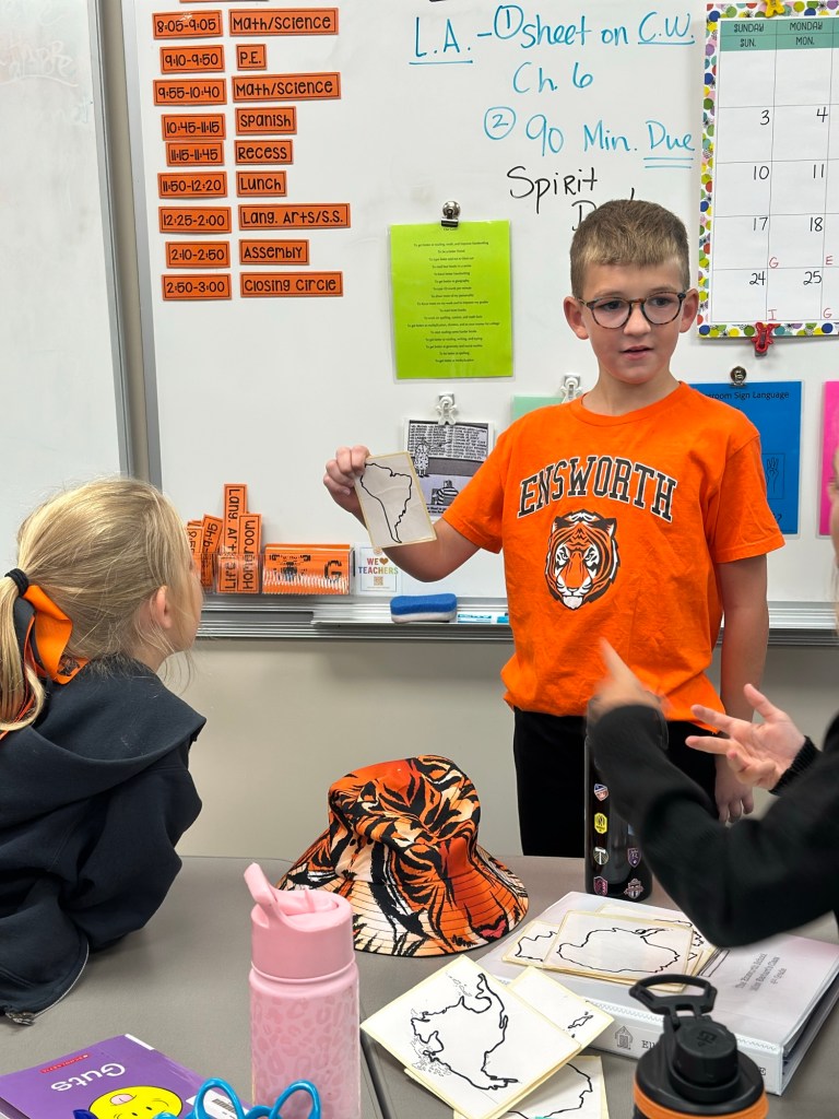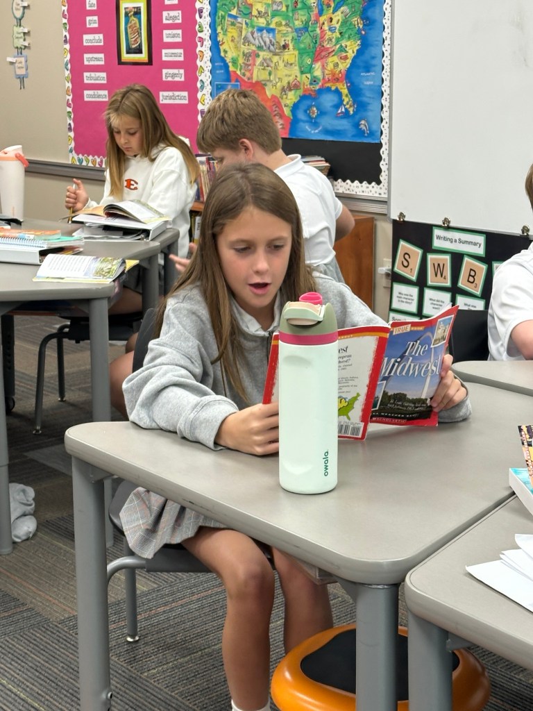 In social studies, we finished our book on the Midwest. Students completed a couple sets of comprehension questions – some independently and others with partners.
