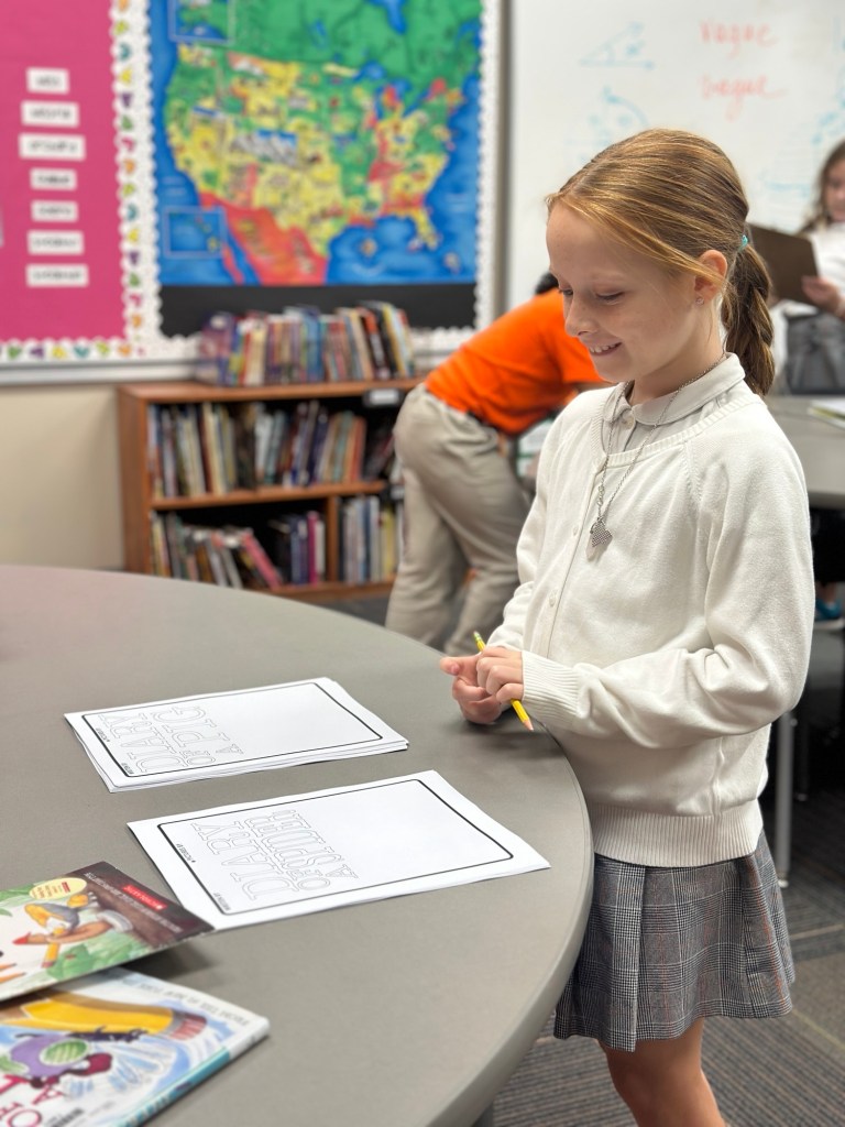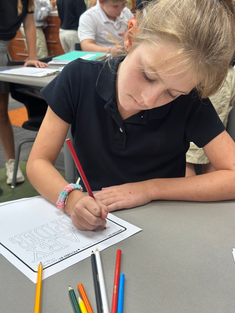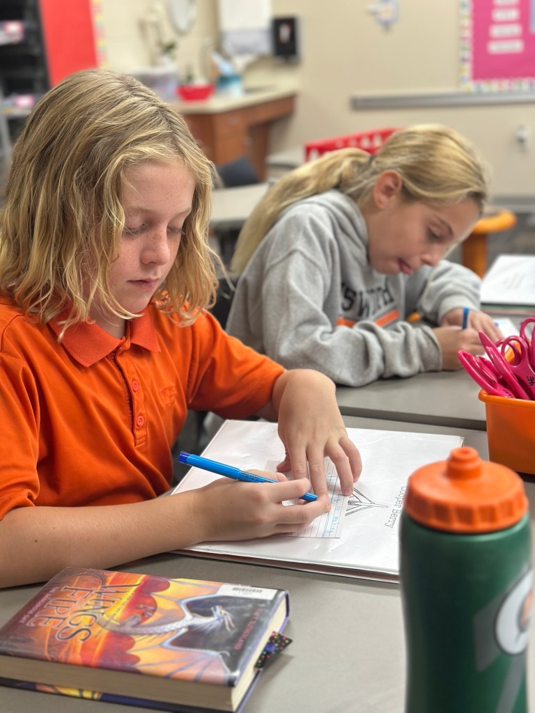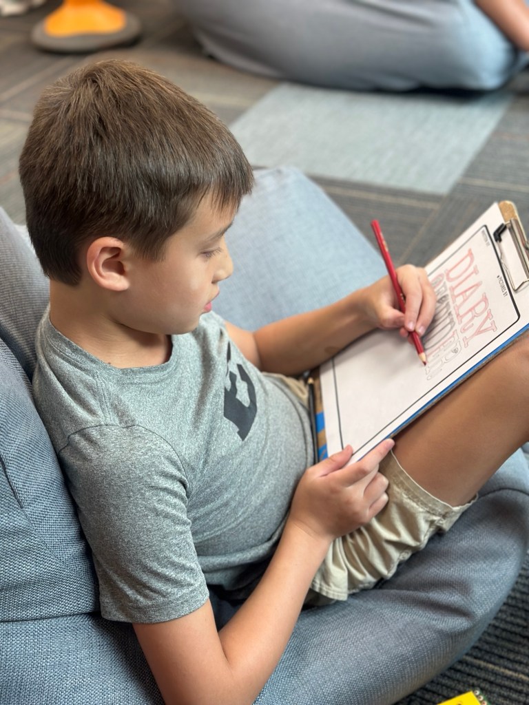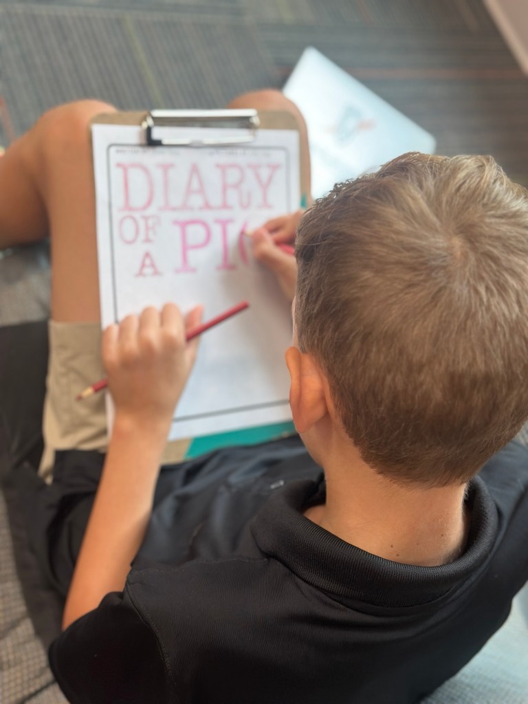 Since we finished Charlotte’s Web last week, the students are now able to complete the remaining entries in their diary projects. A few kids completed all of the entries as well as the illustrations and were able to bind their books!