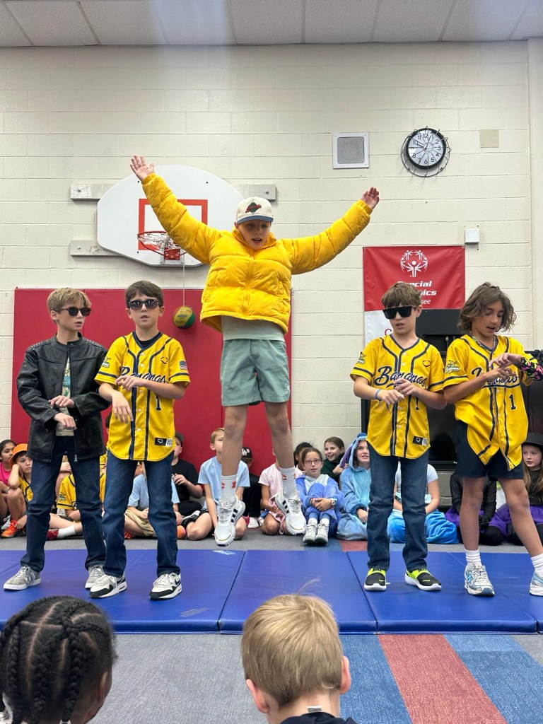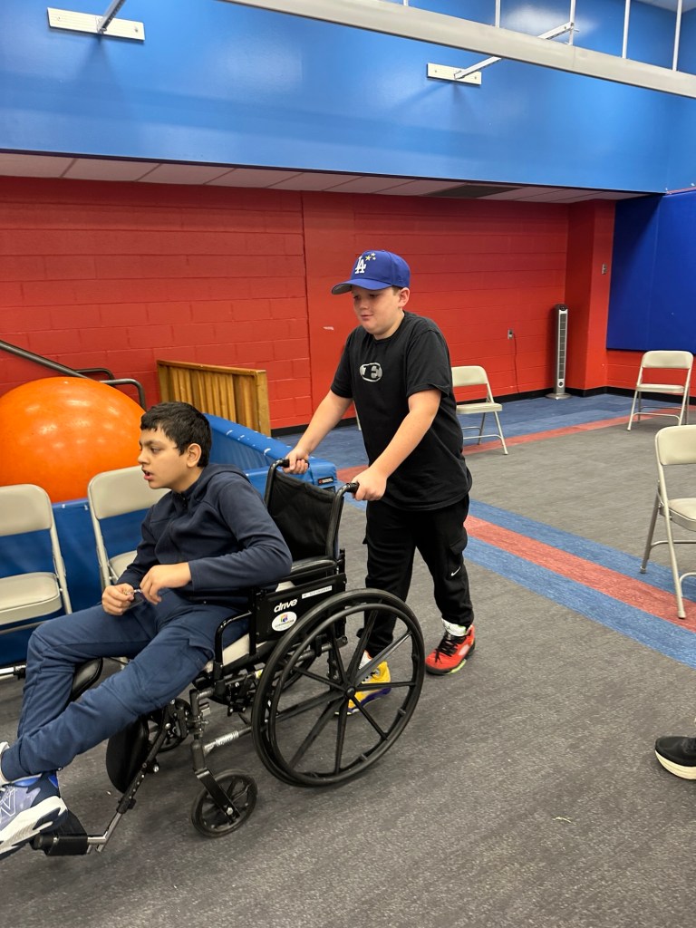 On Thursday, they did a fantastic job bringing energy and happiness to the students of HH. After their dances, we performed a song in sign language and then they helped roll the students back to their classrooms. They had a few minutes to visit there and to learn about their facility.