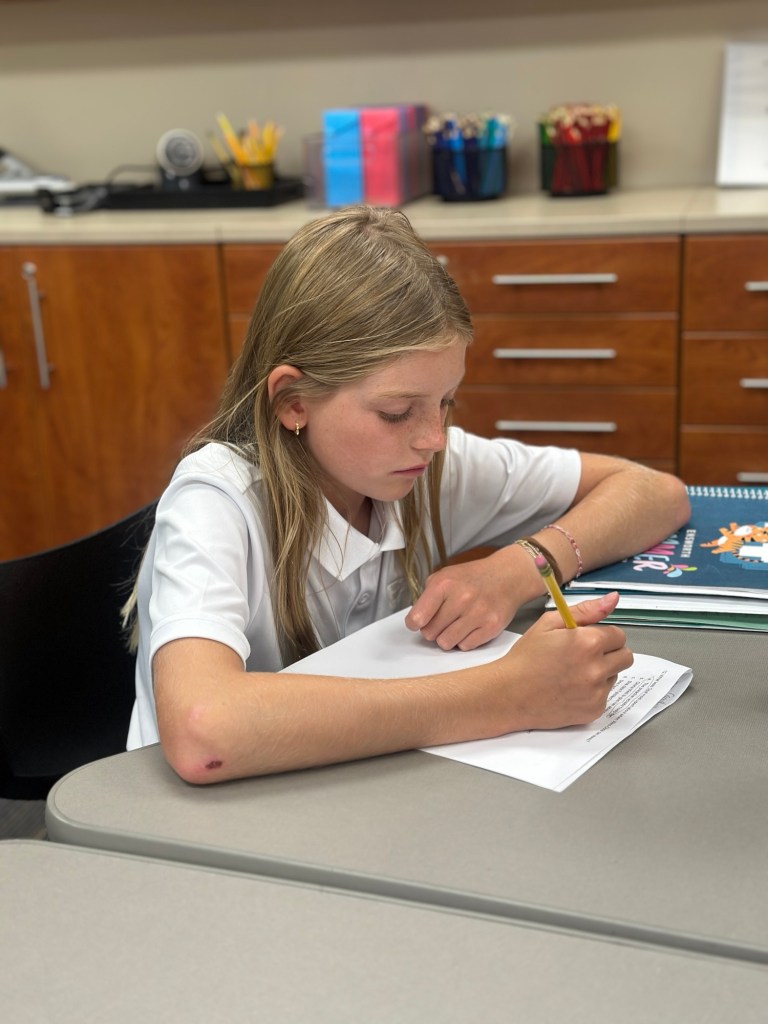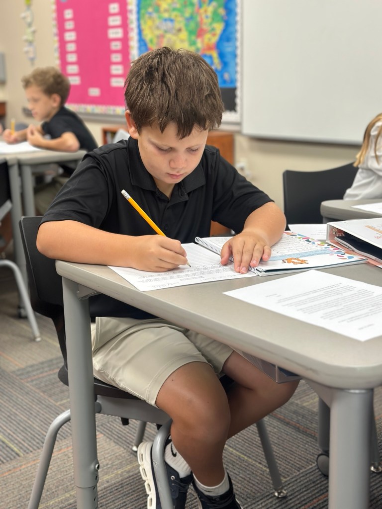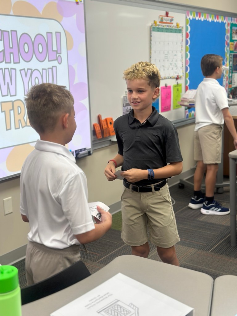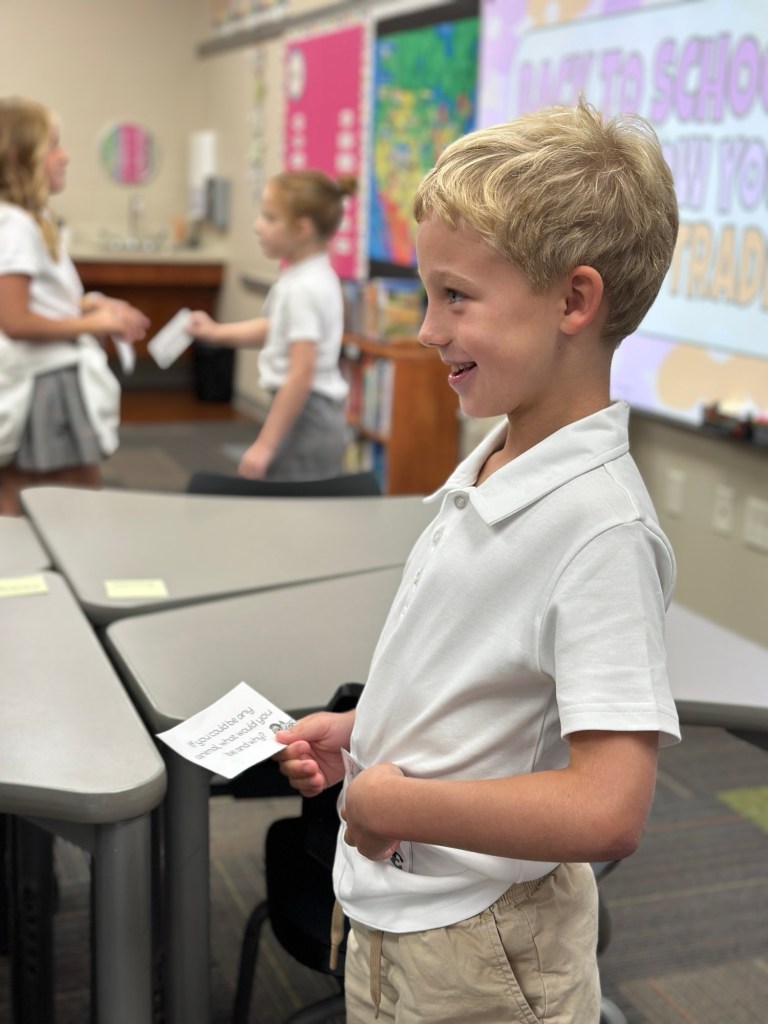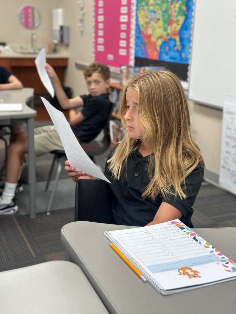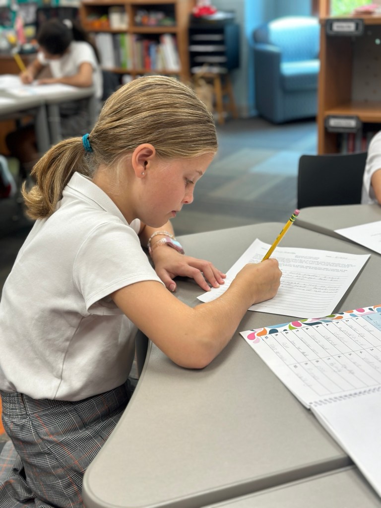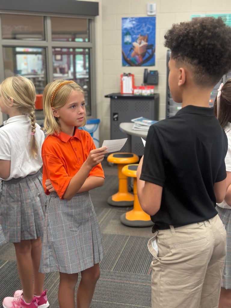 On Thursday and Friday, students were tasked with crafting a letter to their teacher. Inspired by the picture book we read on Wednesday, students received a letter from me, reviewed the parts of a letter, and wrote to me about themselves. They had already generated a list of ten character traits as a part of their summer work, so we used that to get started.