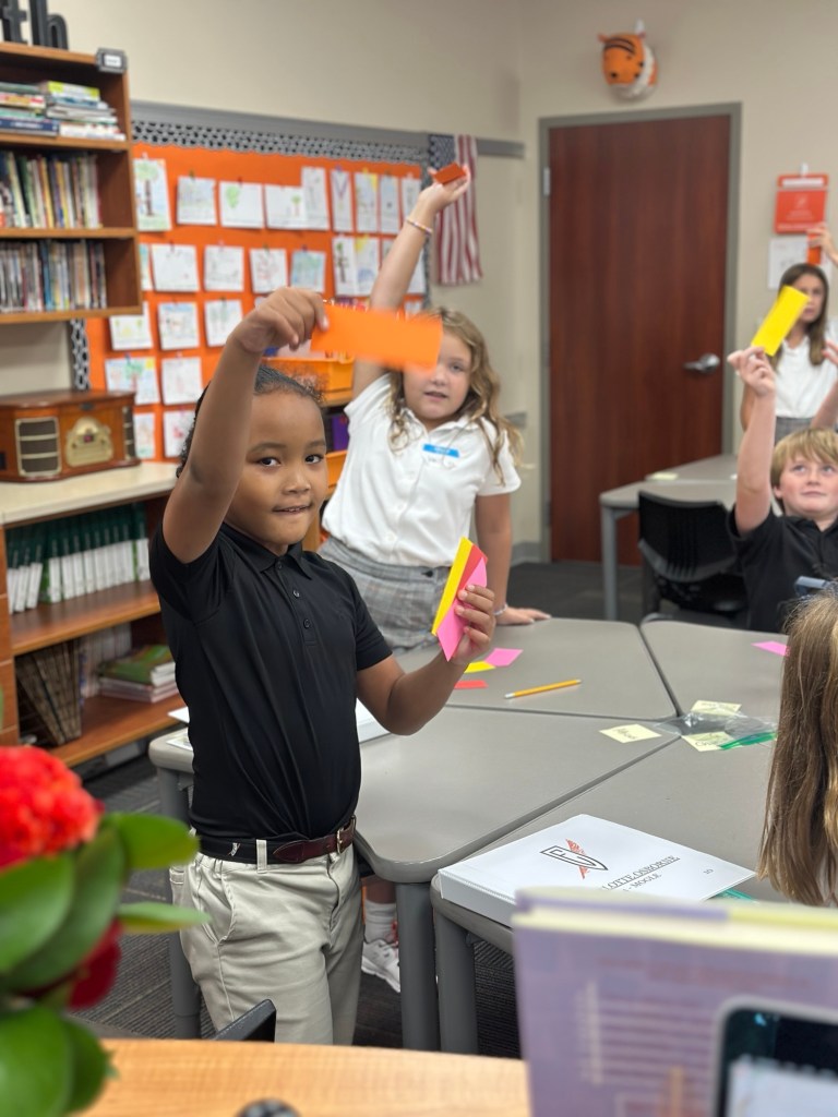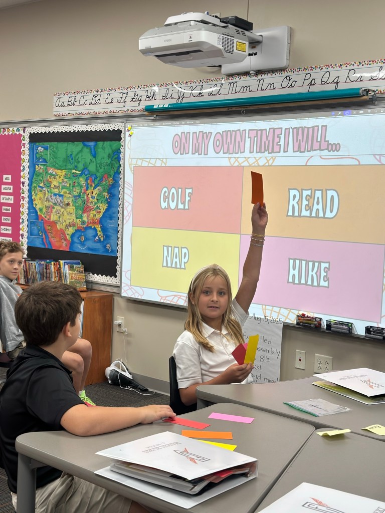 In Morning Meetings, we enjoyed the butterfly handshake, finding things in common with a partner, and a game of Back-to-bBack. I also read aloud The Legend of Rock, Paper, Scissors. Afterwards, my homeroom engaged in big game with Will coming out on top. When we play ‘entourage-style’, kids play Rock, Paper, Scissors against one opponent, and then winners find new opponents. It’s what the other kids do that is so important. They turn into the ‘entourage’ for the person who beat them and cheer them on to victory. That’s exactly the kind of resilience, teamwork, and sportsmanship we want to see in our classroom.
